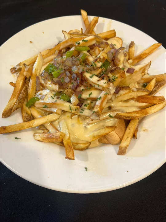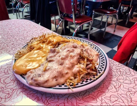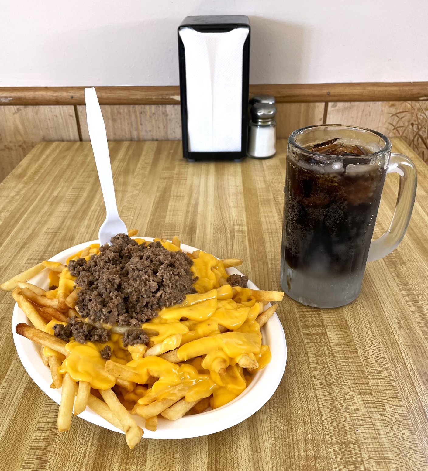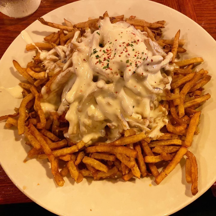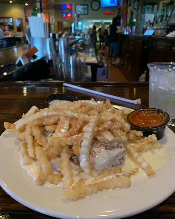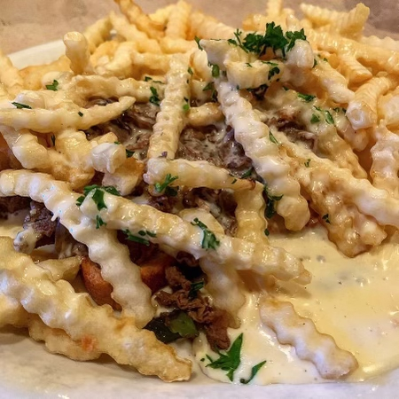 So what is a horseshoe, you ask? It’s two thick slices of toasted Texas Toast, topped with your choice of meat, then covered with a heaping pile of crispy French fries and drenched with homemade cheese sauce! It’s doesn’t get much better than that!