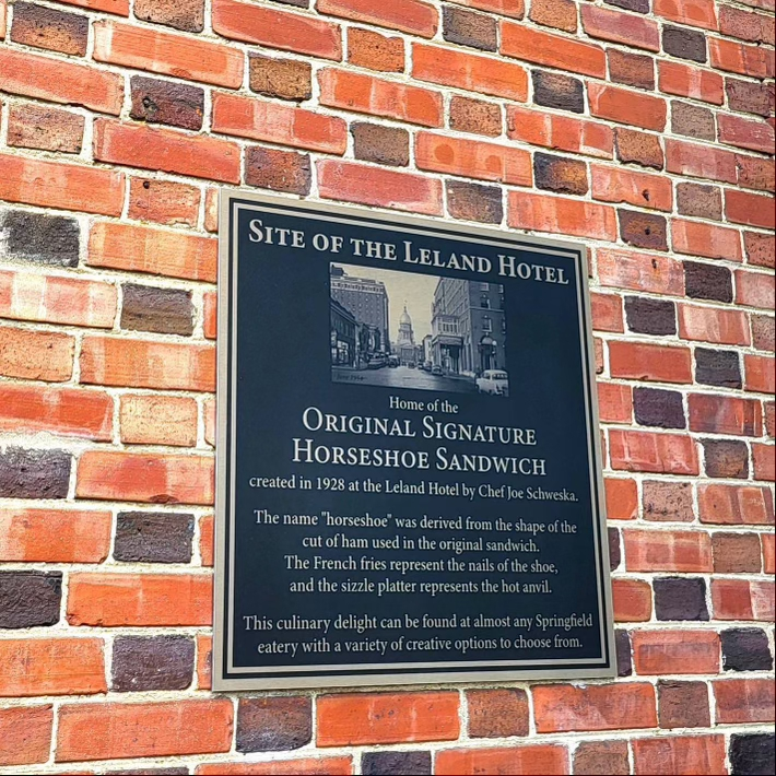 This creation goes all the way back to 1928 at the Leland Hotel & was created by Chef Joe Schweska. The name “horseshoe” was derived from the shape of the cut of ham used in the original sandwich. The French fries represent the nails of the shoe, and the sizzle platter represents the hot anvil.
